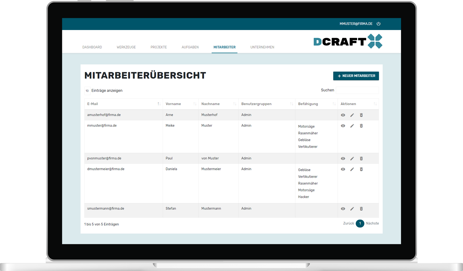 Mit DCRAFT können Sie Ihre Werkzeuge einfach und komfortabel online erfassen und verwalten.